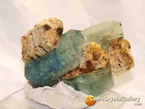 This is a beautiful cluster. The main Aquamarine crystal has a great termination and a beautiful deep blue color. Behind that is a large tabby-like Aquamarine crystal, and all around those are groupings of Feldspar and Schorl (Black Tourmaline). Besides the very light contact damage on the back, this piece is in perfect condition!