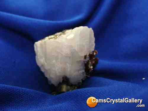 This Vesuvianite cluster is the bed for a nice sized Calcite crystal. There is some contact damage to the bottoms of the Vesuvianite and there is also some light damage on the side of the Calcite.