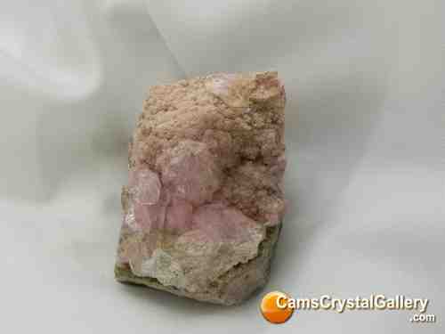 This rhodo has two presentations. One is small spherical pink and then the quartz that has the rhodochrosite included in it. The included rhodochrosite is bright pink and the luster and clarity of the quartz is great. there is some peripheral damage, b