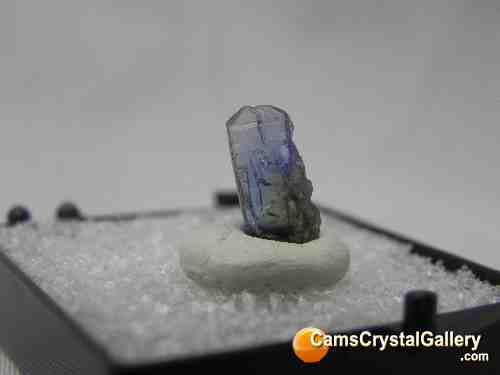 Tanzanite is a unique variety of zoisite found only in the Merelani Hills of Tanzania. This thumbnail is a natural crystal that has not been treated and has a greenish base changing to a blue gemmy tip. A nice specimen.