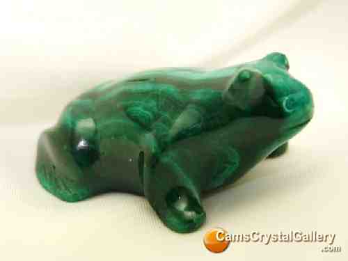 This is a beautifully carved frog that has mostly dark green with 3 strips of light going down the center like race stripes. it is about the same size as a 50 cent piece and its the perfect display gift for any age!