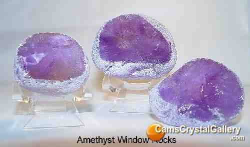These stones are called polished amethyst quartz windows because they are tumbled amethyst quartz that has had a window cut on one face that is polished so you can see into the stone. They are also called ""Seer Stones"," or ema eggs, and these come from Brazil. They are used for meditation and scrying. Mystic Lore: Amethyst has long been called the sobriety stone."" In ancient Rome", crushed amethyst was added to wine cups to prevent drunkenness. It is said to assist with healing alcoholism, compulsive behaviors, and addictions of all kinds. Amethyst brings energies of stability, peace, calm, balance, courage and inner strength. It has been used to protect against psychic attacks. On the spiritual level, amethyst can help open to communication with angels, telepathy and other psychic abilities. It is an excellent stone for meditation or dream work, past life work, and can help you see your path. It has also been used to help ease the pain of grief, and promote happiness. Amethyst is reputed to be beneficial when dealing with legal problems, and money issues, which can lead to prosperity and abundance. Amethyst is also used as protection for travelers. Physically amethyst is said by spiritual healers and mystical lore to heal the withdrawal symptoms of any sort of addiction, help with headaches, insomnia, arthritis, pain relief, circulatory system issues, endocrine system problems, chronic fatigue, fibromyalgia, immune system deficiencies, and general healing. Amethyst is associated with the brow and the crown chakras.
