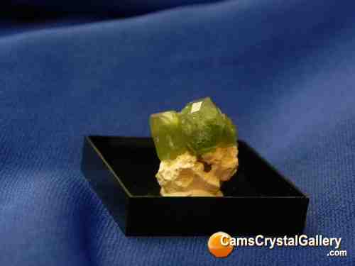 Madagascar continues to produce new and high quality specimens. The large crystal on this specimen is about 0.7 cm on the side. It has really good luster and color. This is a small thumbnail in size