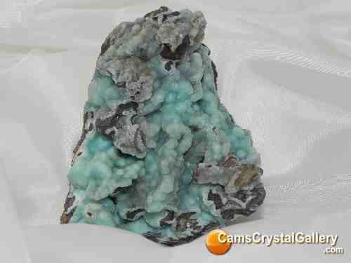 This l arge cabinetspecimen has many small vugs where the massive hemimorphite covered the matrix and then was blessed with the sparkling sky blue crystals. There is some contact and minor damage with this piece and it shows very well.