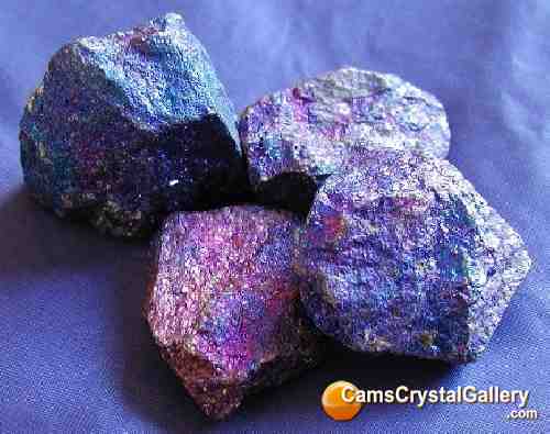 Bornite is an important copper ore mineral. It does however get used in the mineral trade as a curiosity called ""peacock ore"". A favorite among children", the bornite chunks sold as peacock ore or alternatively peacock copper have a rich bouquet of colors. The colors are from an iridescent tarnish that forms on bornite upon exposure to air. The tarnish is made of assorted copper oxides or hydroxides that form a mere atoms thin layer over the bornite. The thickness of the layers is close to the wavelength of light. When light waves bounce between the bornite surface and the top of the tarnish layer they will leave with the wavelengths of various colors. This effect is the same as the rainbow effect that occurs with oil on water. In the case of bornite, the tarnish will have a purplish, violet or blue color. Because bornite is often intergrown with chalcopyrite which tarnishes to more greens and yellows, the peacock ore may have many colors ranging from purple to blue to green to yellow. Metaphysical: Peacock Ore, is a versatile stone for crystal healing and energy work. It enhances inner knowing, strengthens perception and helps you trust what you see psychically. It is also a protective stone, good for many kinds of protection, including protection from illness. It is also good for Tai Chi, acupressure, acupuncture and other practices that move Chi, because it helps move Chi and break up energy blockages. Physically chalcopyrite aligns the body's cellular structure, eliminates toxins, promotes hair growth, assists with healing bronchitis, other lung disorders, can help heal and protect from highly infectious diseases, fevers and inflammation.