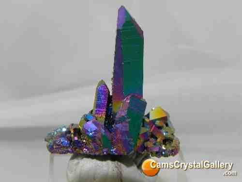 No this is not a naturally occurring specimen. The quartz is natural and has gone through a special process that has bonded titanium to the surface of the quartz. It is very durable and will not wear off.